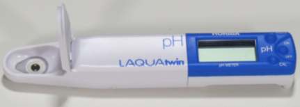 Here is a digital pH meter. Just a few drops of urine or saliva is placed on the tip and the pH is given in the digital readout.