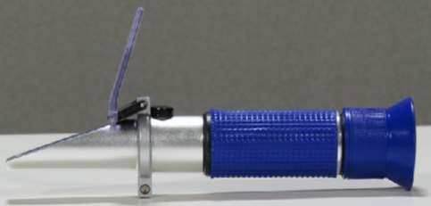 This instrument is called a refractometer. When measuring fluids it gives us a way to measure the specific gravity of the fluid or the “weight” of all the complex elements that are within it.